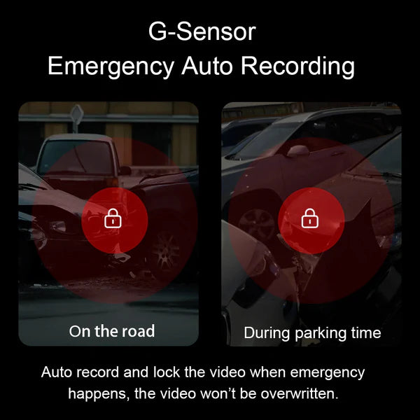 LOOP RECORDING & G-SENSOR – Seamless loop recording automatically overwrites old footage when storage is full. In the event of a sudden collision, the G-Sensor locks the current video to prevent overwriting, preserving crucial evidence. Includes a 128GB MicroSD card and supports up to 256GB. No Parking Mode.